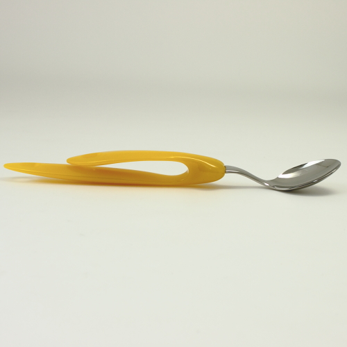 Рукоятки этих ложек и вилок выполнены из материала, который смягчается в кипятке и твердеет при охлаждении, поэтому Вы можете сделать ручку, идеально подходящую под свою руку. Клипса выполнена в форме буквы U, поэтому тем, у кого нет сил держать ложку или вилку, мы рекомендуем сжимать в руке букву целиком. Те, у кого плохо работает запястье, могут зажимать руку между "хвостами" буквы и не бояться ее уронить.