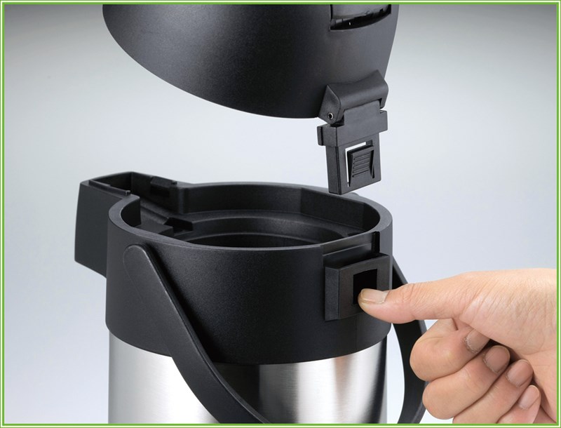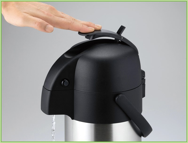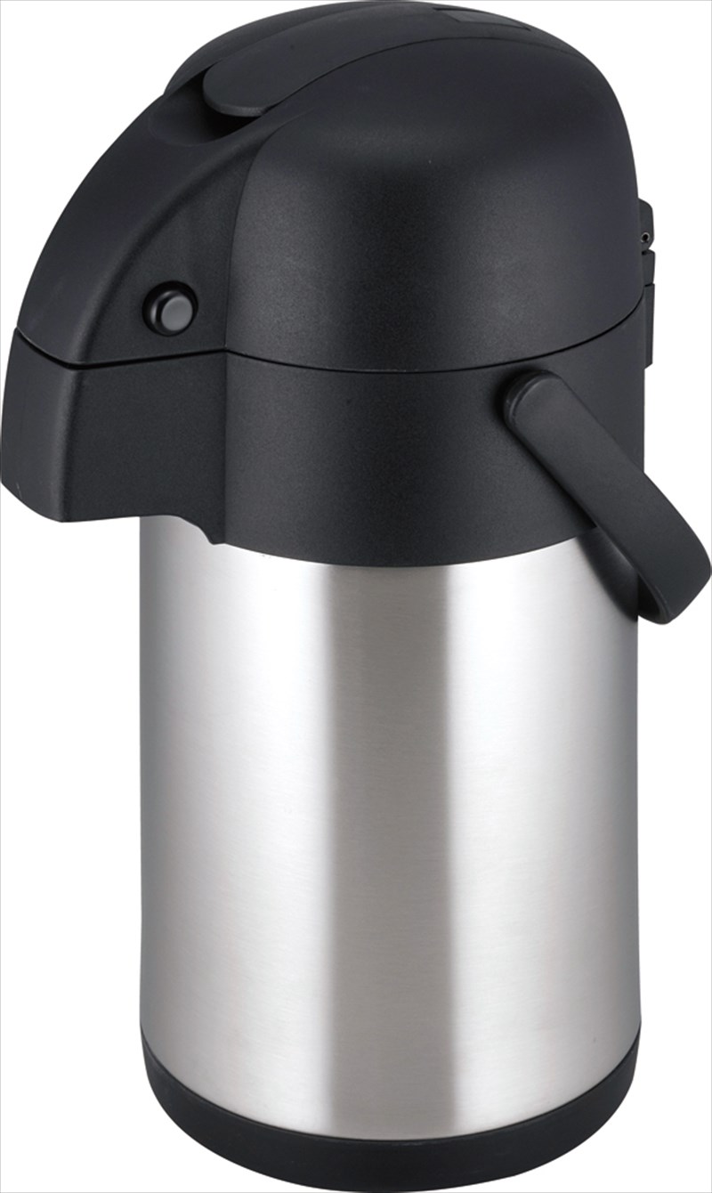 Вакуумный термос с двойными стенками заполненными воздухом, с рычагом для подачи напитка. Прилагая небольшое усилие на рычажок налейте необходимое вам количество напитка. Внутренняя емкость из нержавеющей стали с широким горлышком для удобства пользования и чистки. Крышка снимается при нажатии